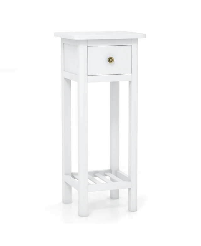 Kings Brand Furniture Zeke Narrow Side Table with Storage Shelf - Modern Sofa End Table, Small Nightstand Magazine Rack