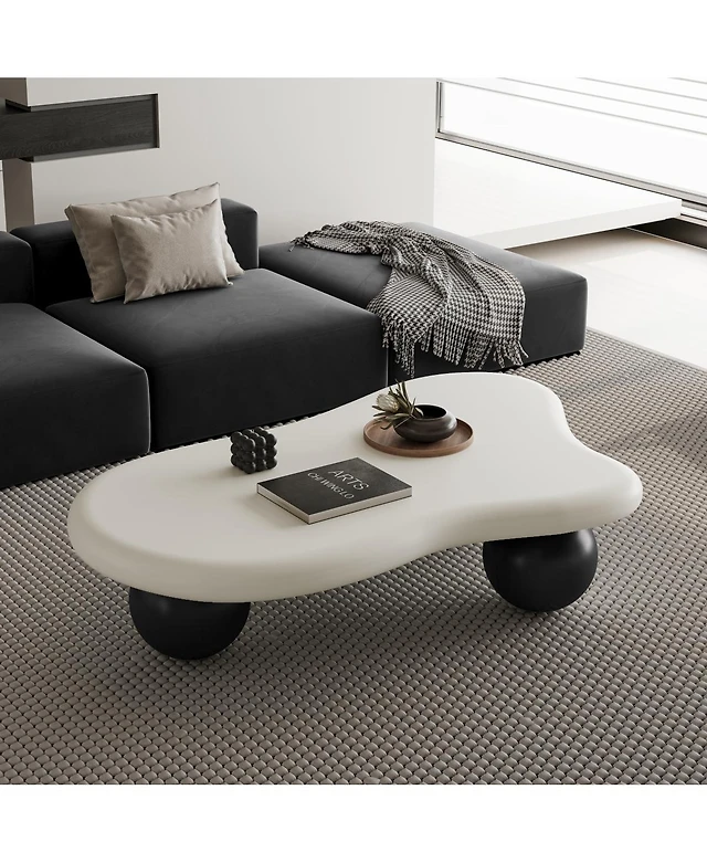 Streamdale Furniture 40 Inch Cloud Shaped Coffee Table with 3 Ball Legs for Living Room
