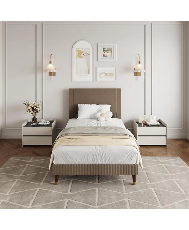 Gaomon Twin Size Velvet Upholstered Platform Bed Frame with Headboard, Low Profile Design for Kids