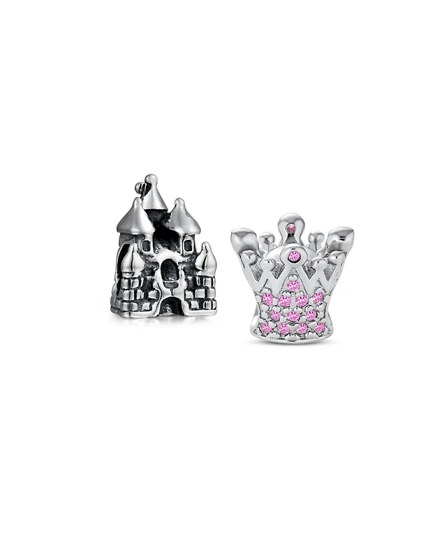 Bling Jewelry Set of 2 Fairytale Castle & Princess Queen Crown Pink Fuchsia Crystal Bead Charm