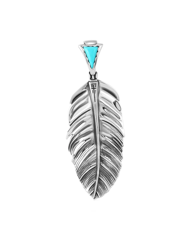American West Jewelry Sterling Silver Sleeping Beauty Turquoise Fritz Casuse Prayer Feather Pendant Enhancer