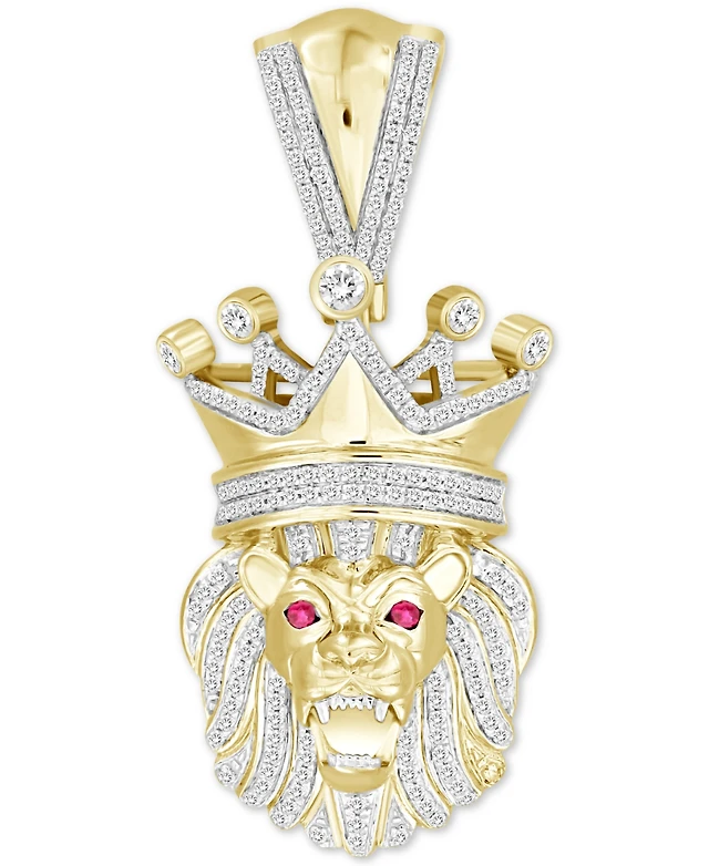 Men's Ruby Accent & Diamond (5/8 ct. t.w.) King Lion Pendant in 10k Gold