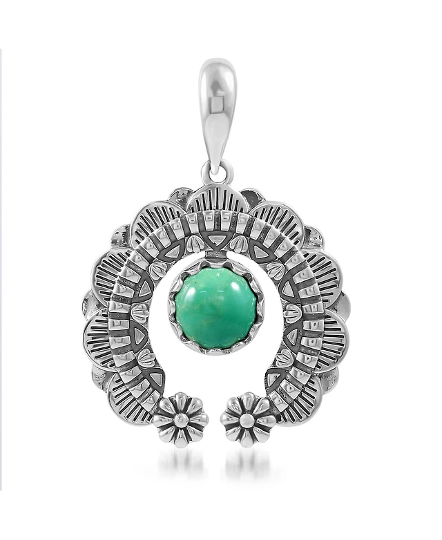 American West Jewelry Sterling Silver Sleeping Beauty Turquoise Round Cut Naja Pendant Enhancer