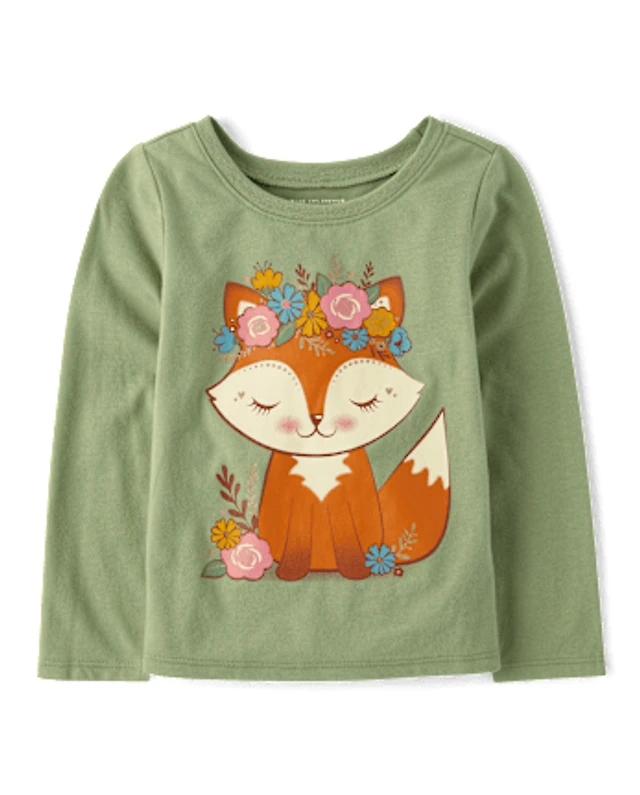 Baby And Toddler Girls Flower Crown Fox Graphic Tee