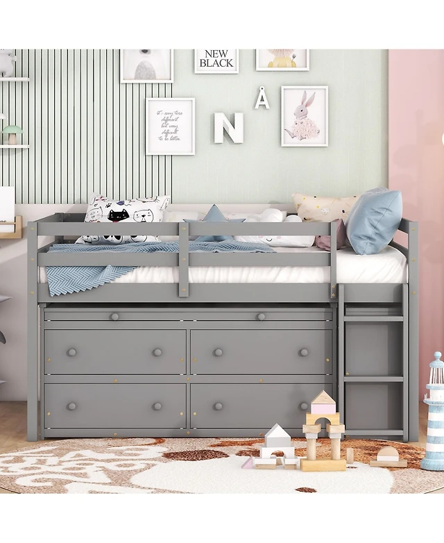 Streamdale Twin Low Loft Bed With Rolling Desk, Shelf And Drawers