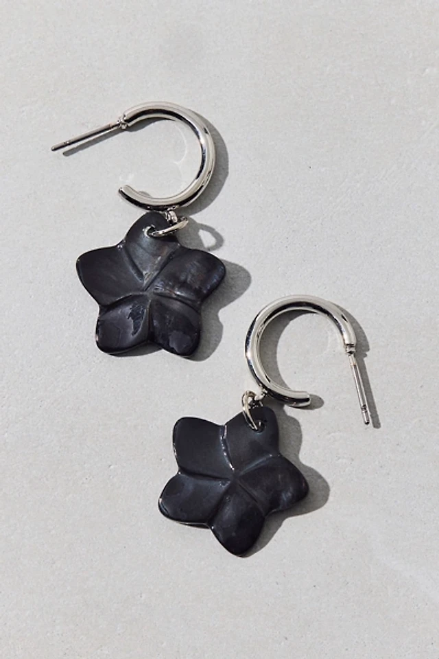 1/6 CT. T.w. Enhanced Blue and White Diamond Flower Hoop Earrings in Sterling Silver