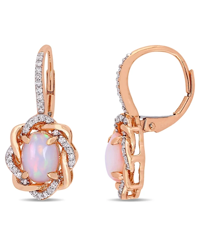 Effy Collection Diamond (1/4 ct. t.w.) & Opal (7/8 ct. t.w.) Stud Earrings in 14k Yellow Gold
