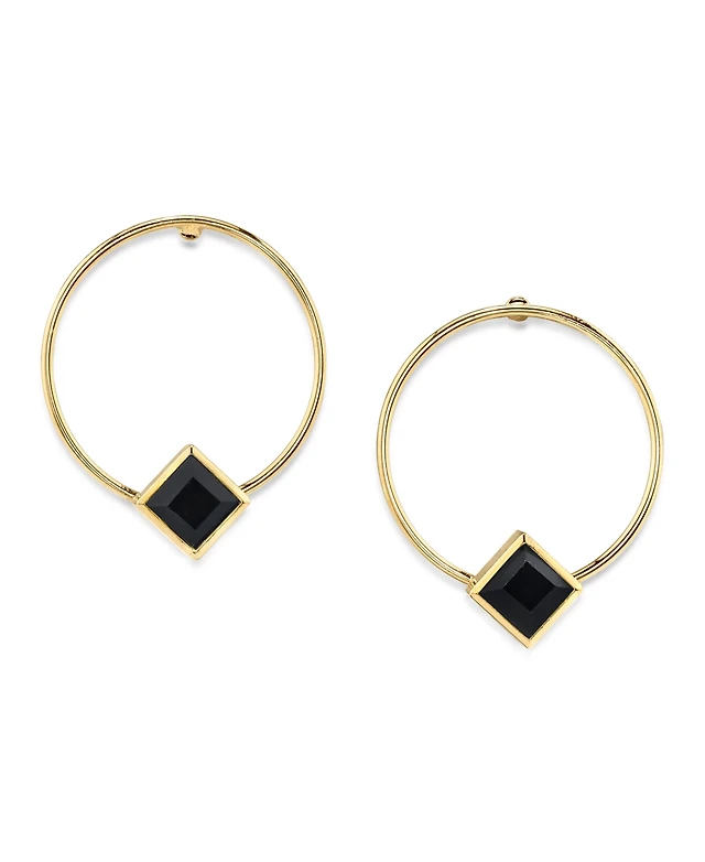 2028 14K Gold-tone Diamond Shape Crystal Hoop Stainless Steel Post Small Earrings