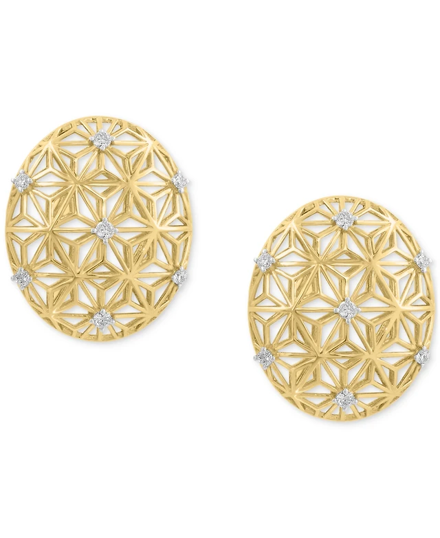 Diamond Oval Bezel Cluster Stud Earrings (1/5 ct. t.w.) in 14k Gold