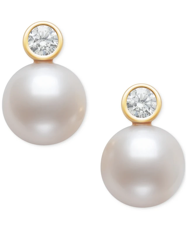 Grown With Love Cultured Freshwater Pearl (7 & 10-1/2mm) & Lab Grown Diamond (3/8 ct. t.w.) Double Drop Earrings in 14k Gold