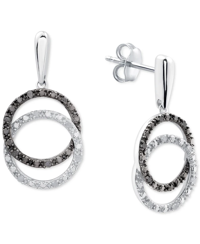 Macy's Men's Black Diamond Huggies Drop Earrings (1/3 ct. t.w.) in 14k Yellow Gold-Plated Sterling Silver