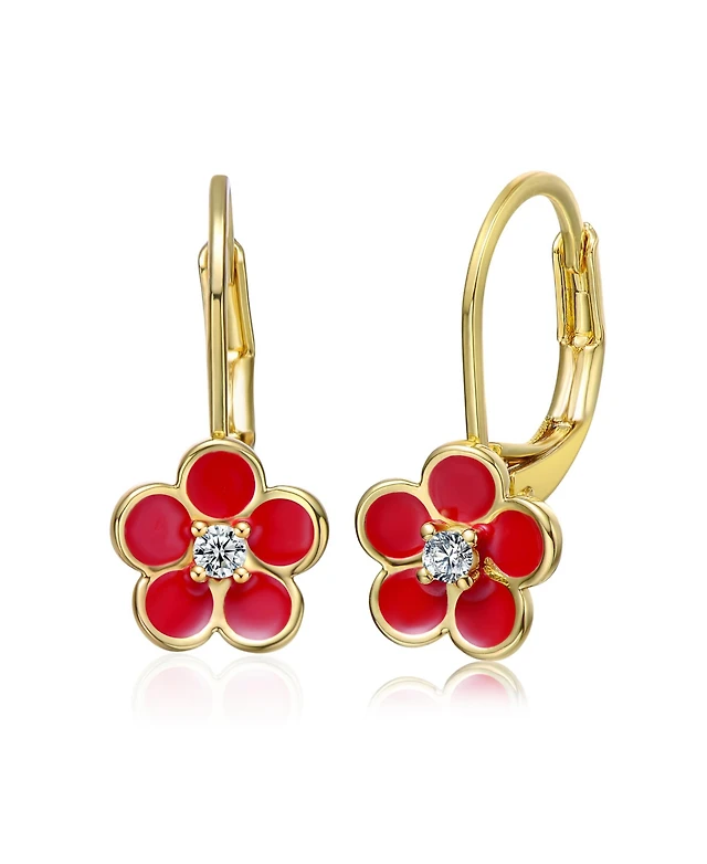 GiGiGirl Sterling Silver 14K Gold Plated with Red cubic zirconia Daisy Flower Stud Earrings