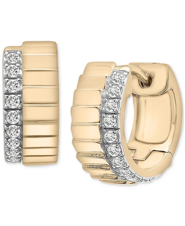 Effy Diamond Double Row Wavy Huggie Hoop Earrings (1/4 ct. t.w.) in 14k Gold, 0.75"