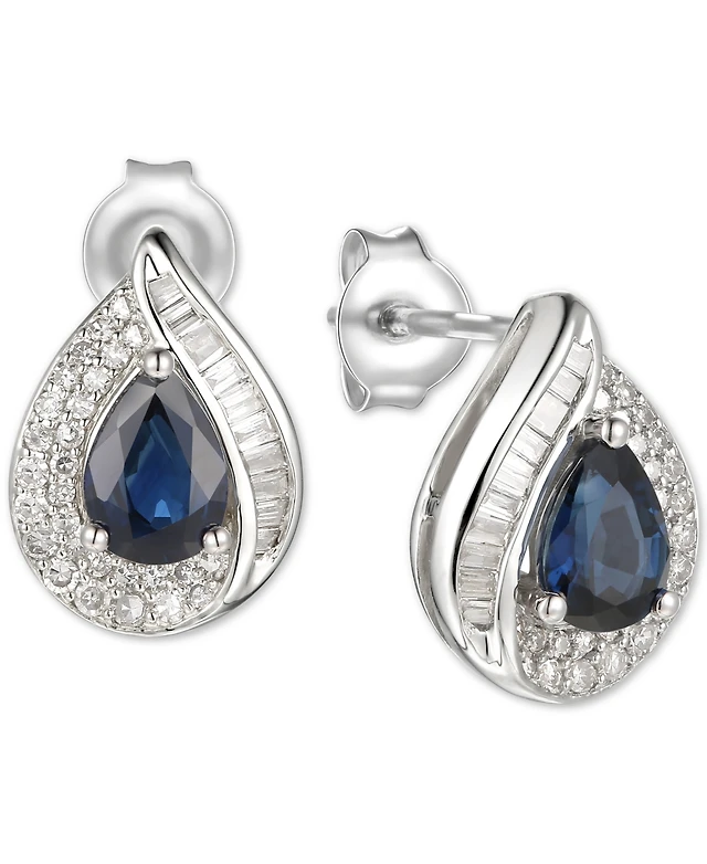 6.0mm Cushion-Cut Lab-Created Blue Sapphire Stud Earrings in 10K White Gold