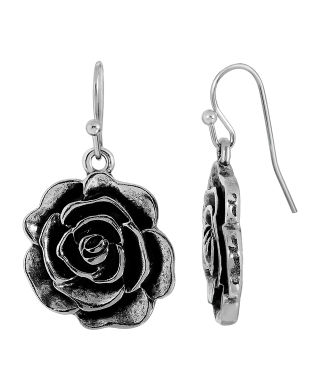 Bling Jewelry Set of Two Flower Half Hoop Clip-On Earrings in Oxidized Gold Plated