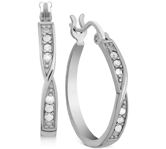 Black Diamond (1/10 ct. t.w.) & White Diamond (1/20 ct. t.w.) Crossover Hoop Earrings in Sterling Silver