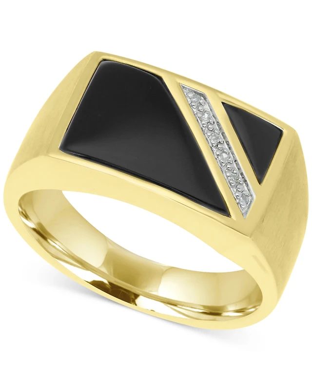 Effy Men's Onyx & Diamond (1/10 ct. t.w.) Ring in Gold-Plated Sterling Silver