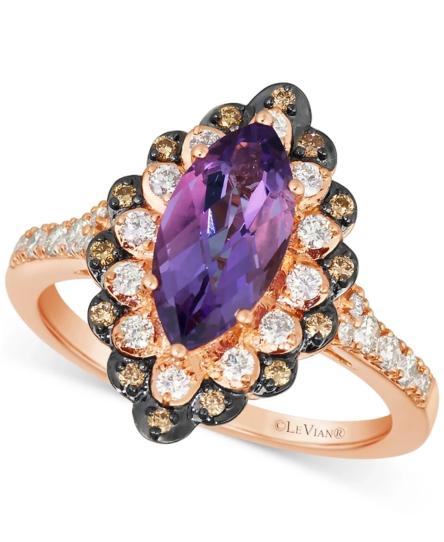 Le Vian Grape Amethyst (1-3/8 ct. t.w.) & Diamond (3/8 ct. t.w.) Marquise Halo Ring in 14k Rose Gold