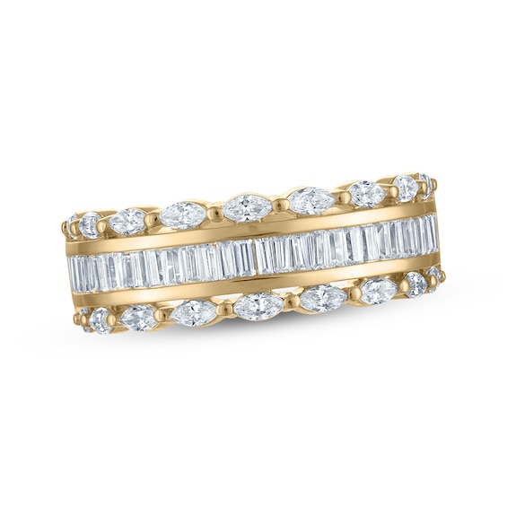 Previously Owned Diamond Engagement Ring 1-1/2 ct tw Marquise, Baguette & Round 14K Yellow Gold