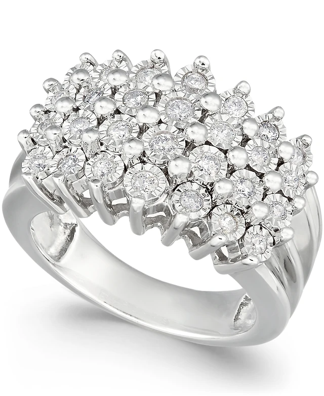 Diamond Multi-Row Ring (1/2 ct. t.w.) in Sterling Silver or 14K Gold Over Sterling Silver