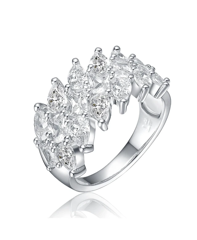 Ra White Gold Plated Clear Cubic Zirconia Marquise Cluster Ring