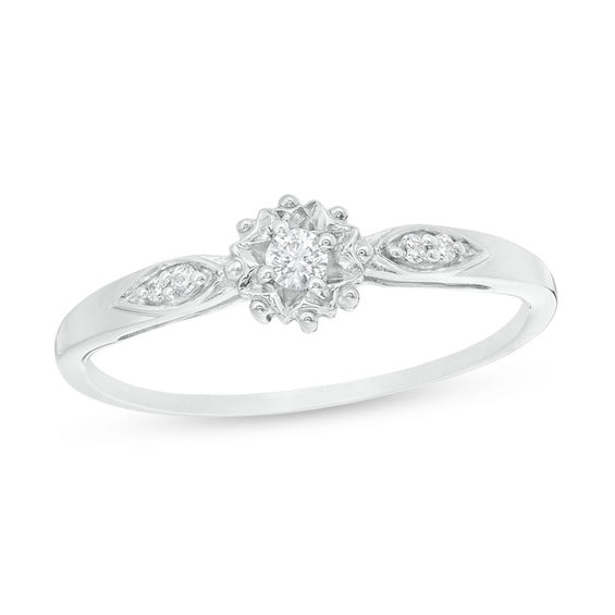Diamond Halo Promise Ring 1/4 ct tw Sterling Silver