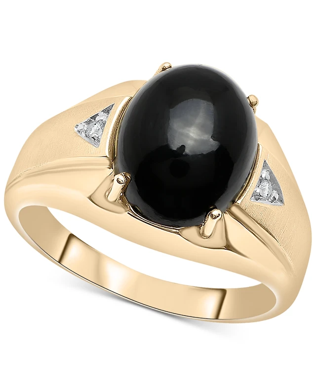 Men's Onyx & Diamond Accent Cabochon Classic Style Ring in 10k Gold