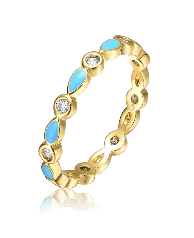 GiGiGirl 14k Yellow Gold Plated with Cubic Zirconia Colorful Marquise Light Blue/Red Enamel Stacking Ring