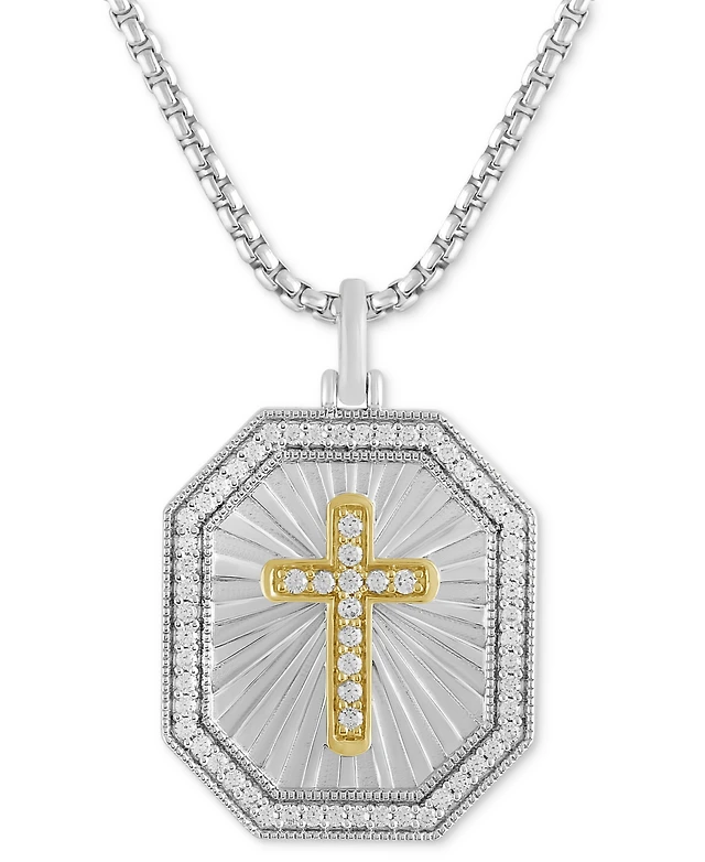 Men's Diamond Cross 22" Pendant Necklace (1/2 ct. t.w.) in Sterling Silver & 18k Gold-Plated Sterling Silver
