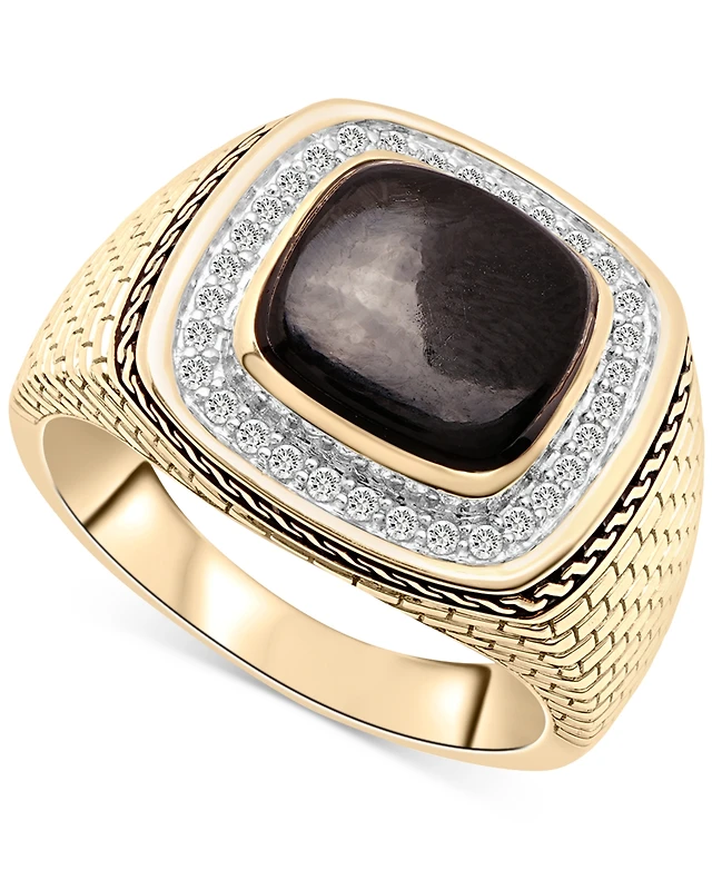 Men's Onyx & Diamond (1/5 ct. t.w.) Brick Texture Ring in 14k Gold-Plated Sterling Silver