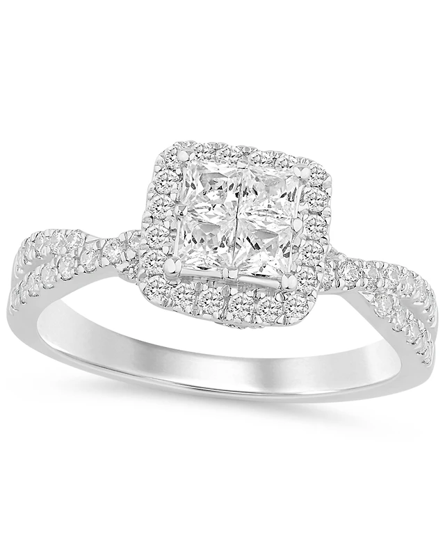 Diamond Quad Cluster Halo Engagement Ring (1 ct. t.w.) in 14k White Gold