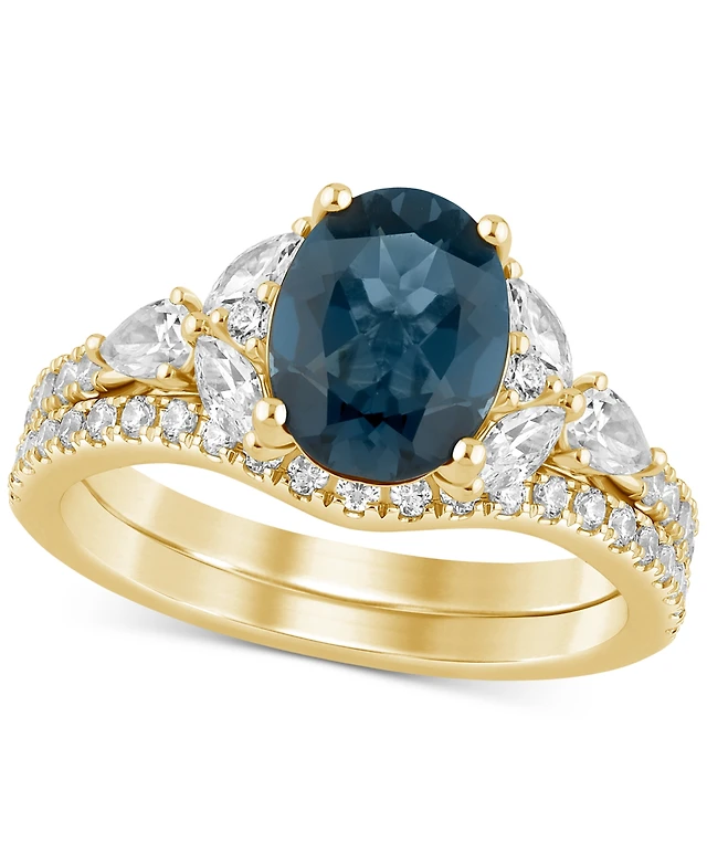 Aquamarine (3 ct. t.w.), Blue Topaz (1 t.w.) & Diamond (1/10 Ring Sterling Silver