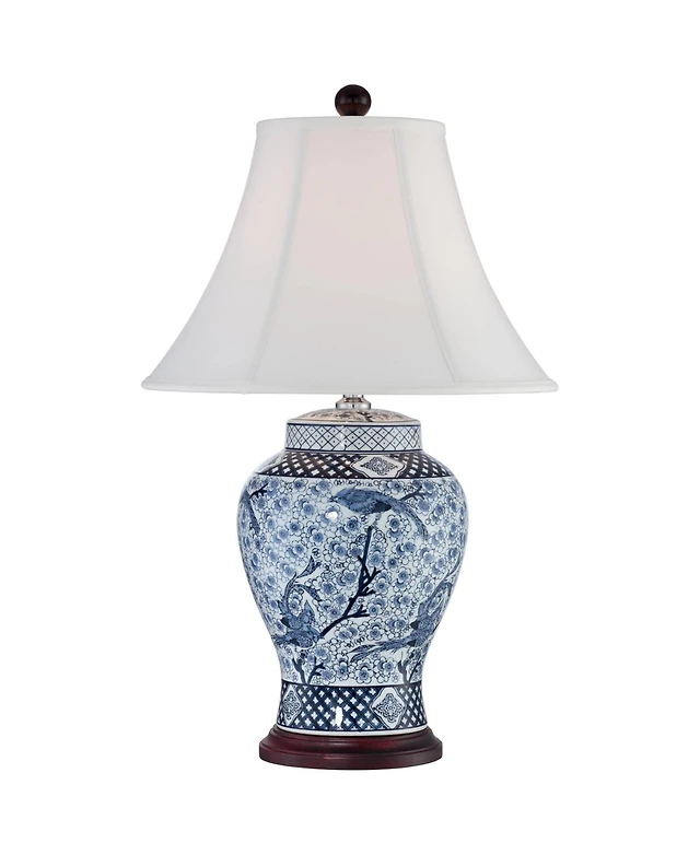 Possini Euro Design Annette Coastal Table Lamp 38" Tall Blue Ceramic Drip Vase with Table Top Dimmer Off White Oval Shade for Bedroom Living Room