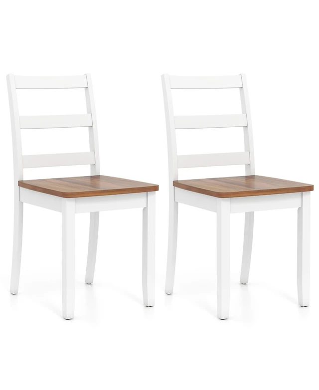 Gymax Set of Dining Chairs Ladder Back Armless Side Chair w/ Solid Rubber Wood Legs