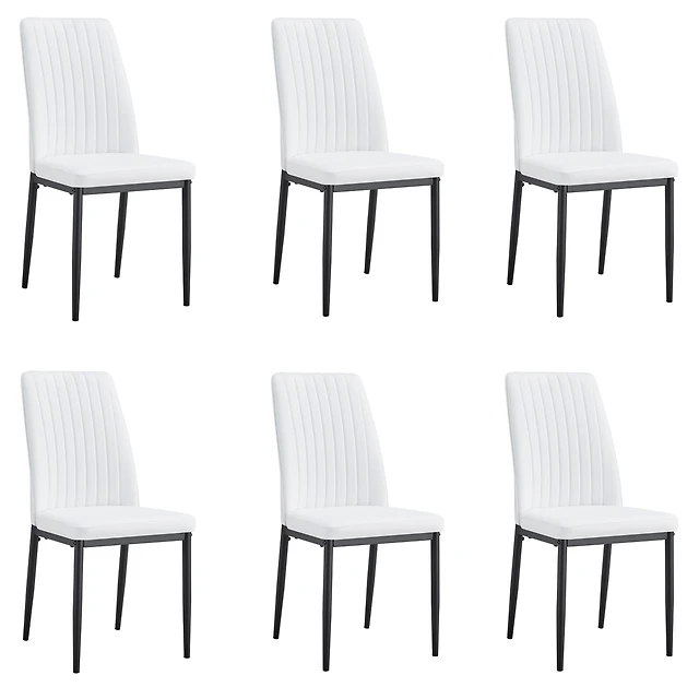 Streamdale Cream-White Mdf Dining Table (55"x31") with 6 White Chairs & Silver Legs