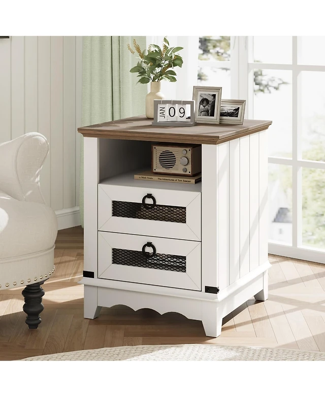 Tribesigns White Nightstand Set of 2, End Table with 2 Drawers, Carved Bedside Tables, Side Table for Bedroom, Living Room, Classic Bedroom Furniture