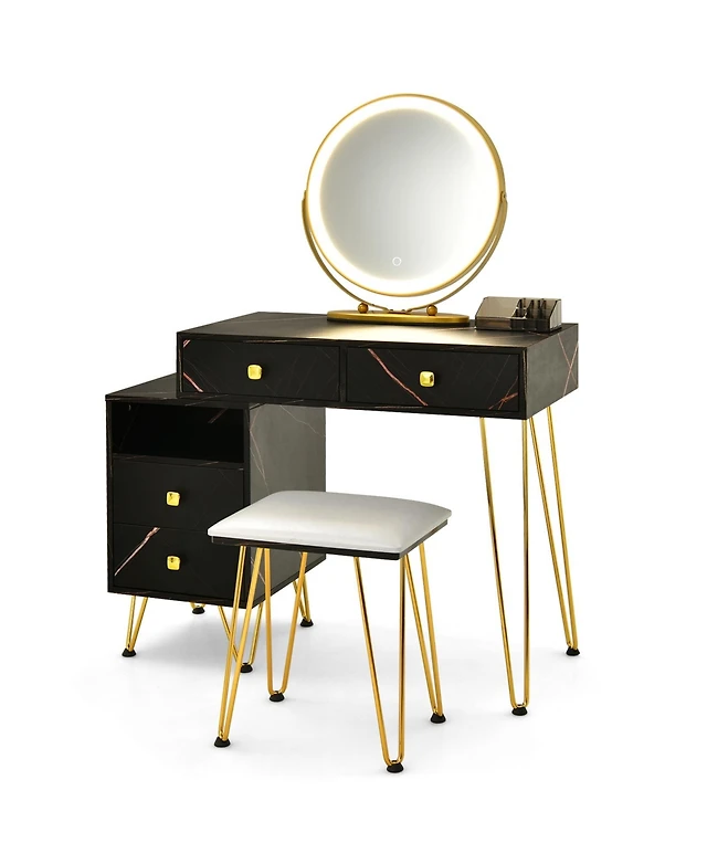 Kids Dressing Vanity Set with Detachable Tri-Folding Mirror and Stool,Pink