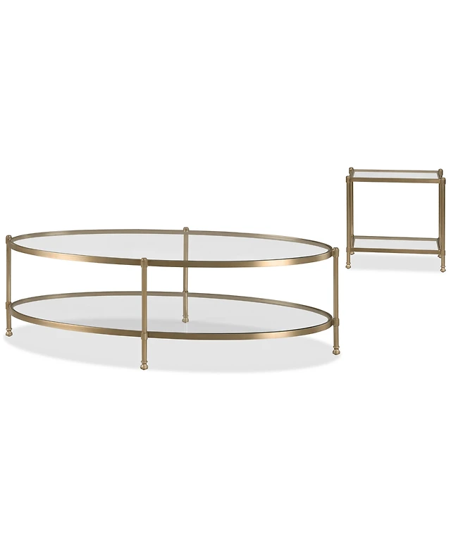 Rainsken Mid-Century Coffee Table Set, Round Fluted End Table With Storage, Golden Handle and Sliding Tambour Door, Side Table for Living Room