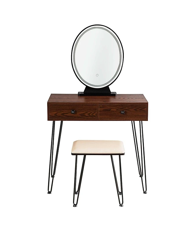 Wooden Vanity Table with Flip Top Mirror and Cushioned Stool