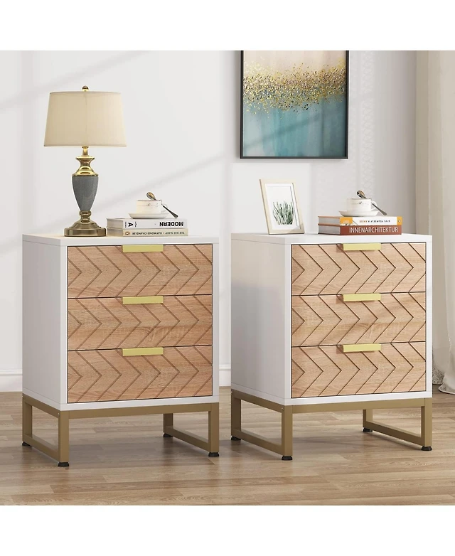 Tribesigns Nightstand Set of 2, Modern 3 Drawers Bedside Table with Unique Zig Zag Design