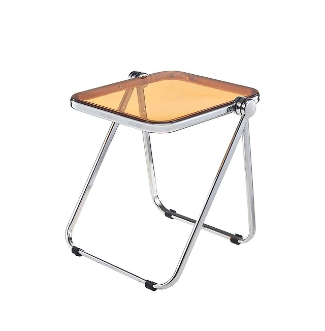Rectangular Folding Side Table in Chrome Finish with Plastic Tabletop