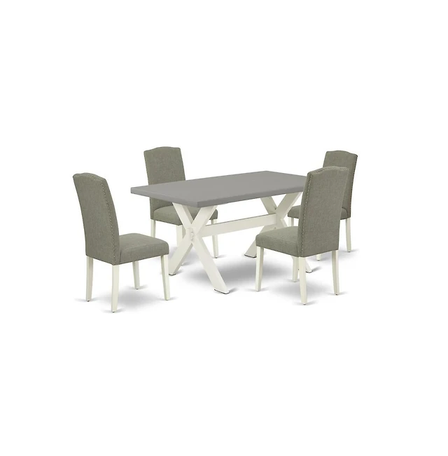 East West Furniture 5-Piece Modern Rectangular Table Set a Good Cement Color Kitchen Table Top and 4 Lovely Linen Fabric Padded Chairs with Nail Heads