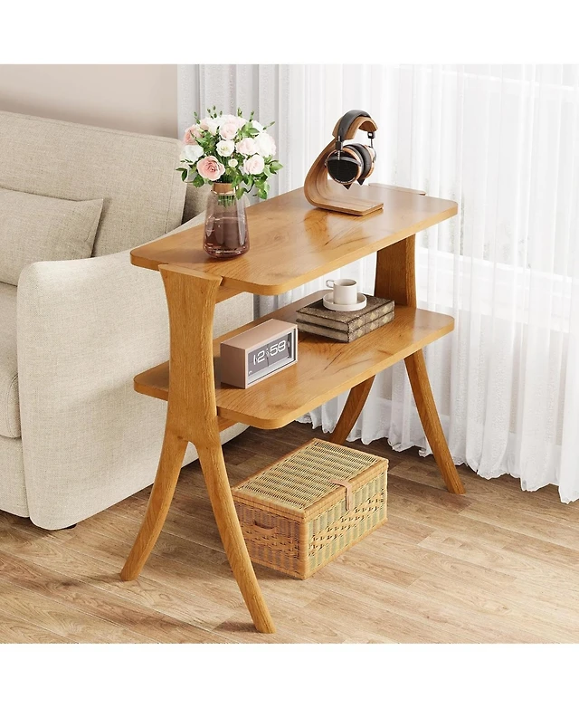 Gymax Industrial End Table Sofa Side Table Nightstand w/ Storage Shelf & Metal Frame