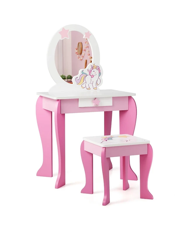 Vanity Table Set with 3-Color Lighted Mirror and Cushioned Stool