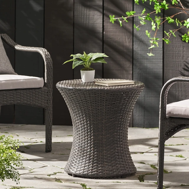 Malmok Outdoor Furniture Coffee Table Faux Rattan Wicker Pattern All-Weather Patio Coffee Table With Shelving