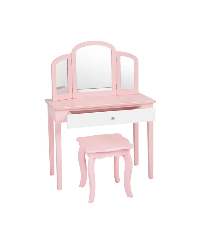 Gouun Kids Princess Make Up Dressing Table with Tri-folding Mirror and Chair