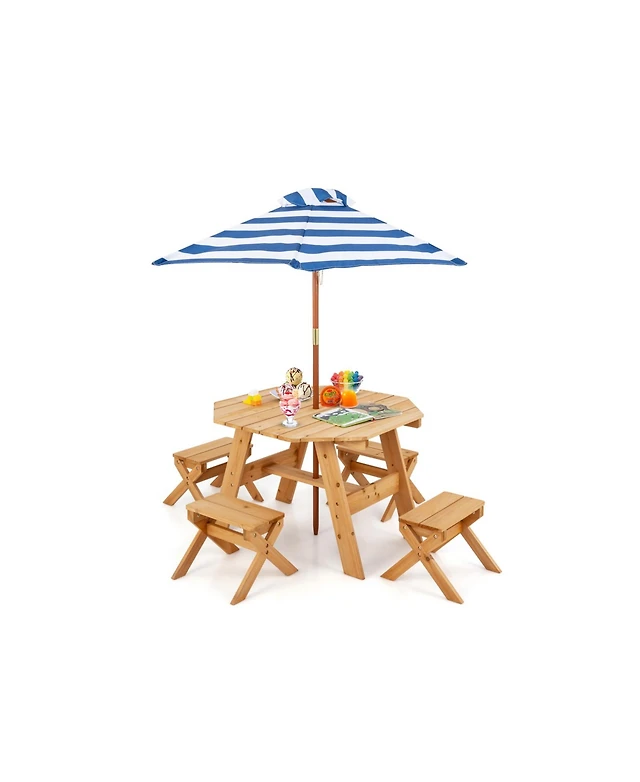 4PCS Patio Solid Wood Furniture Set Conversation Coffee Table W