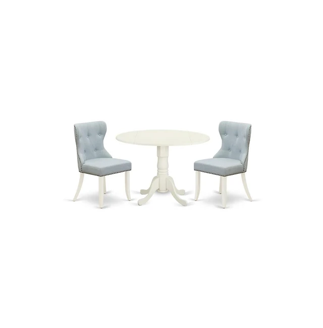East West Furniture 5 Piece Wood Dining Table Set Consists of 1 Drop Leaves Dining Table and 4 Linen White Wooden Kitchen Chairs with X-Back