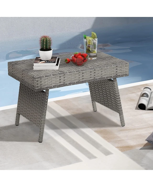 Inolait Folding Pe Rattan Side Coffee Table Patio Garden Furniture