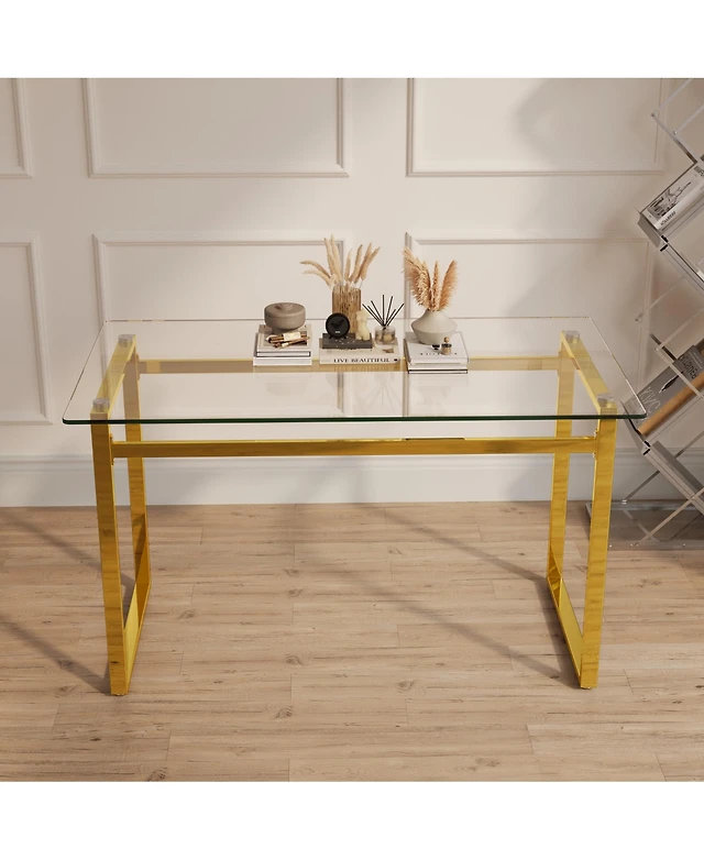 Streamdale Modern Glass Dining Table with Metal Cross Legs